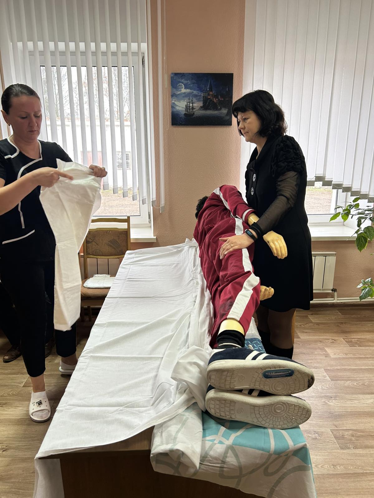 В учреждении «Лоевский территориальный центр социального обслуживания населения» на заседании «Школы социального работника» медицинской сестрой хирургического отделения УЗ «Лоевская ЦРБ» Тарасенко И.В. проведено занятие по теме «Особенности ухода за пожилыми гражданами. Гигиенические процедуры. Профилактика пролежней». Ирина Владимировна не только рассказала об условиях, в которых должны находиться лежачие больные, но и показала на практике, как правильно выполнять ежедневные гигиенические процедуры при уходе за ними в домашних условиях.