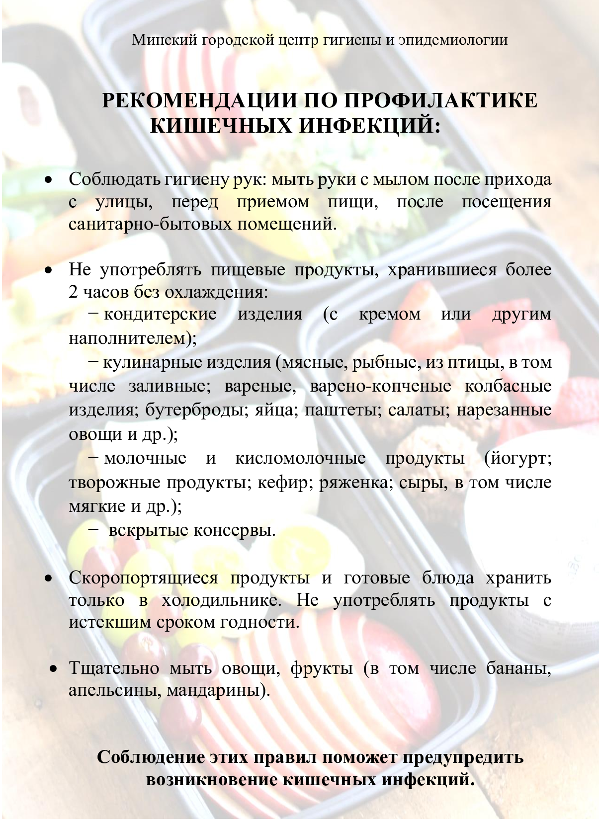 РЕКОМЕНДАЦИИ ПО ПРОФИЛАКТИКЕ КИШЕЧНЫХ ИНФЕКЦИЙ