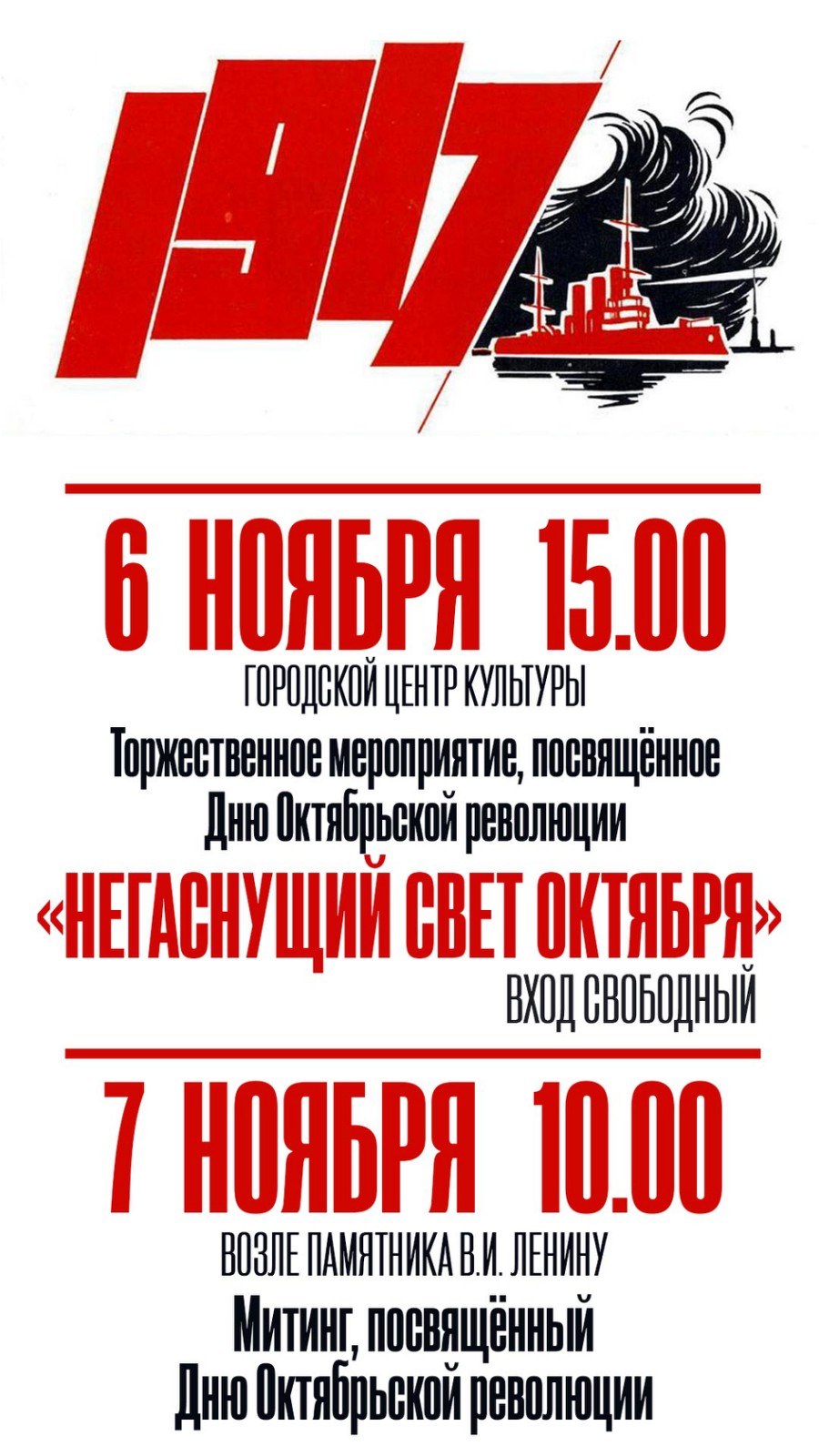 Программа торжественных мероприятий, посвященных Дню Октябрьской революции
