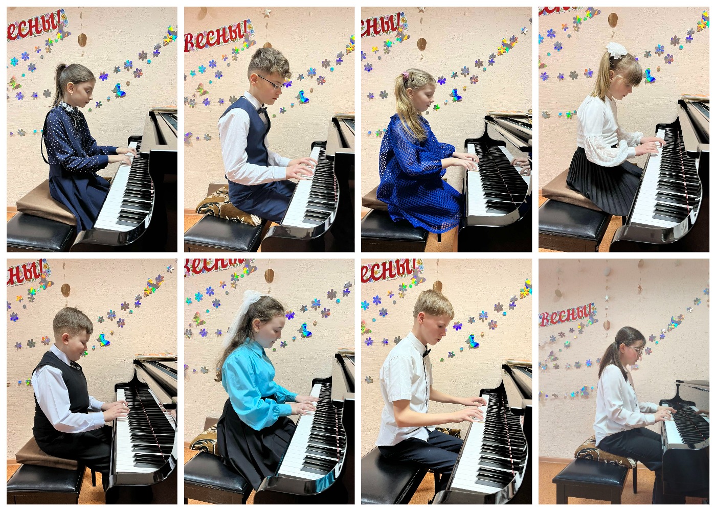 Юные пианисты Ирина Казак, Екатерина Коваль, Вера Саманчук, Эрик Будник, Дарья Игнатенко подарили свои музыкальные номера в сольном и ансамблевом исполнении со своим учителем Екатериной Михайловной Кадощенко. Порадовали всех своим выступлением Екатерина Чечетова, Захар Музыченко, Павел Зелинский, которые занимаются на других инструментах и дополнительно изучают фортепиано.
