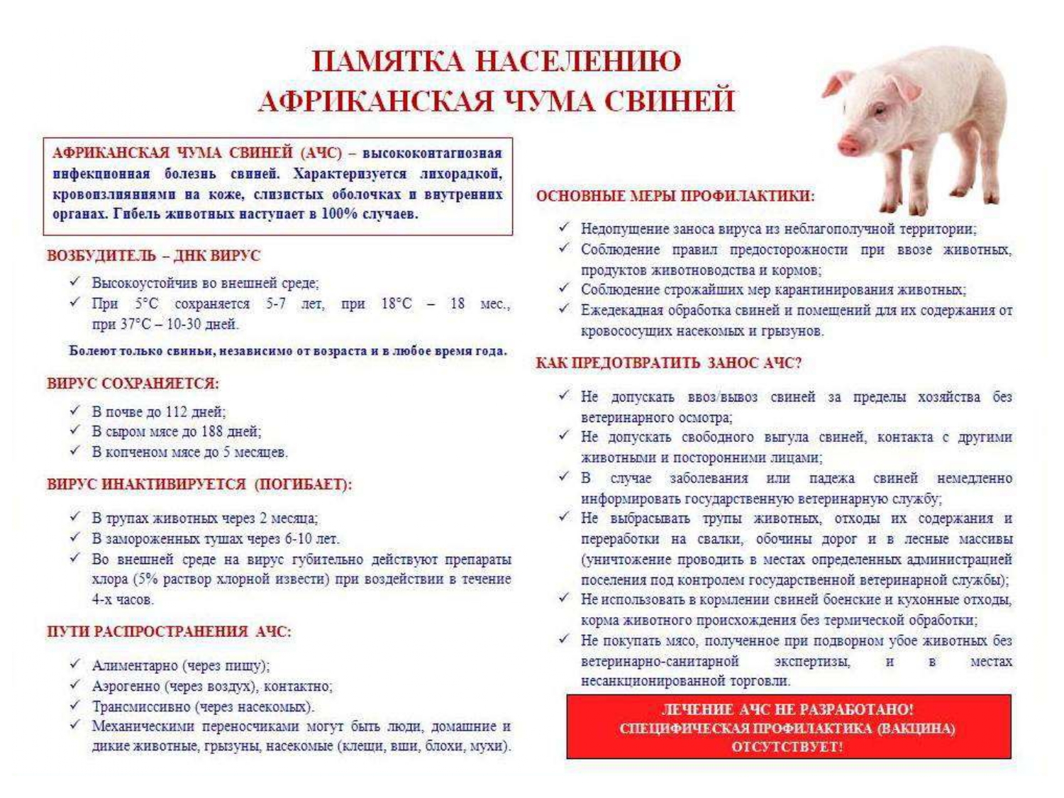 Памятка населению "Африканская чума свиней"
