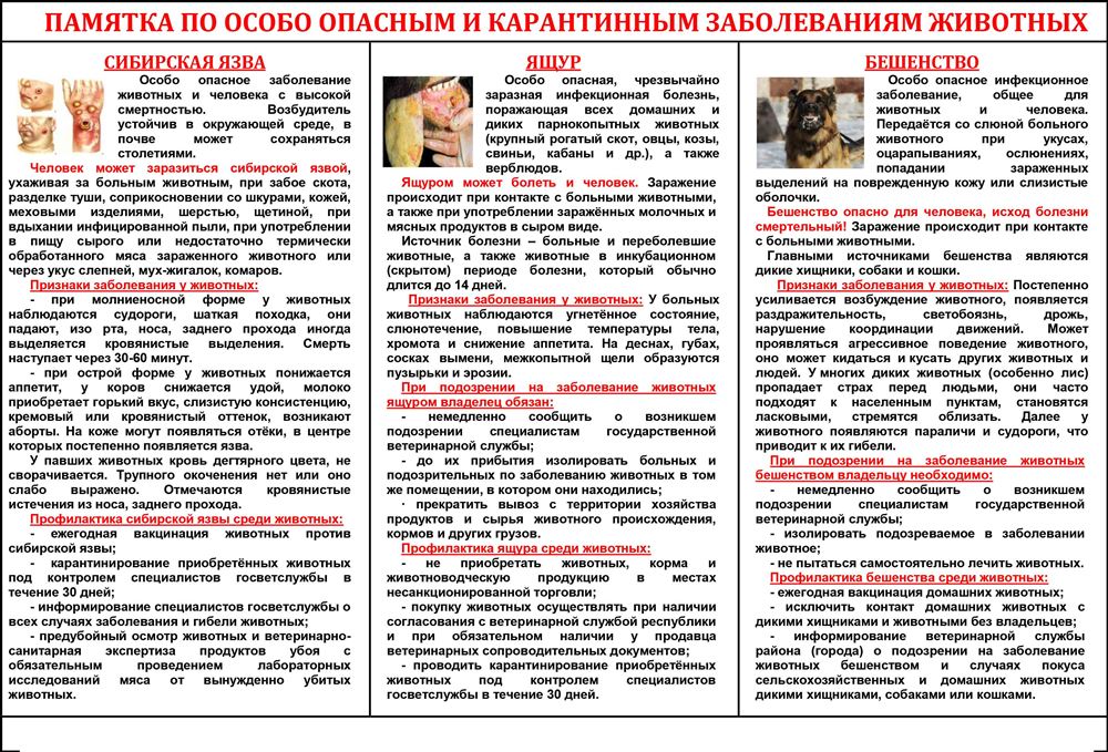 Памятка по особо опасным и карантинным заболеваниям животных