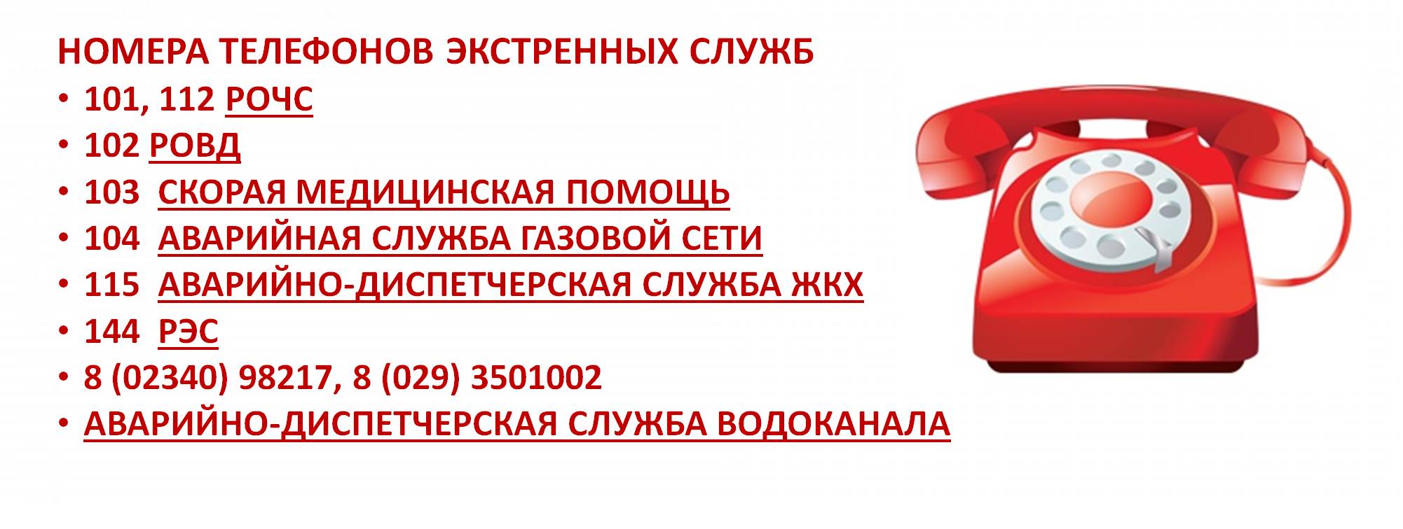 Номера телефонов экстренных служб