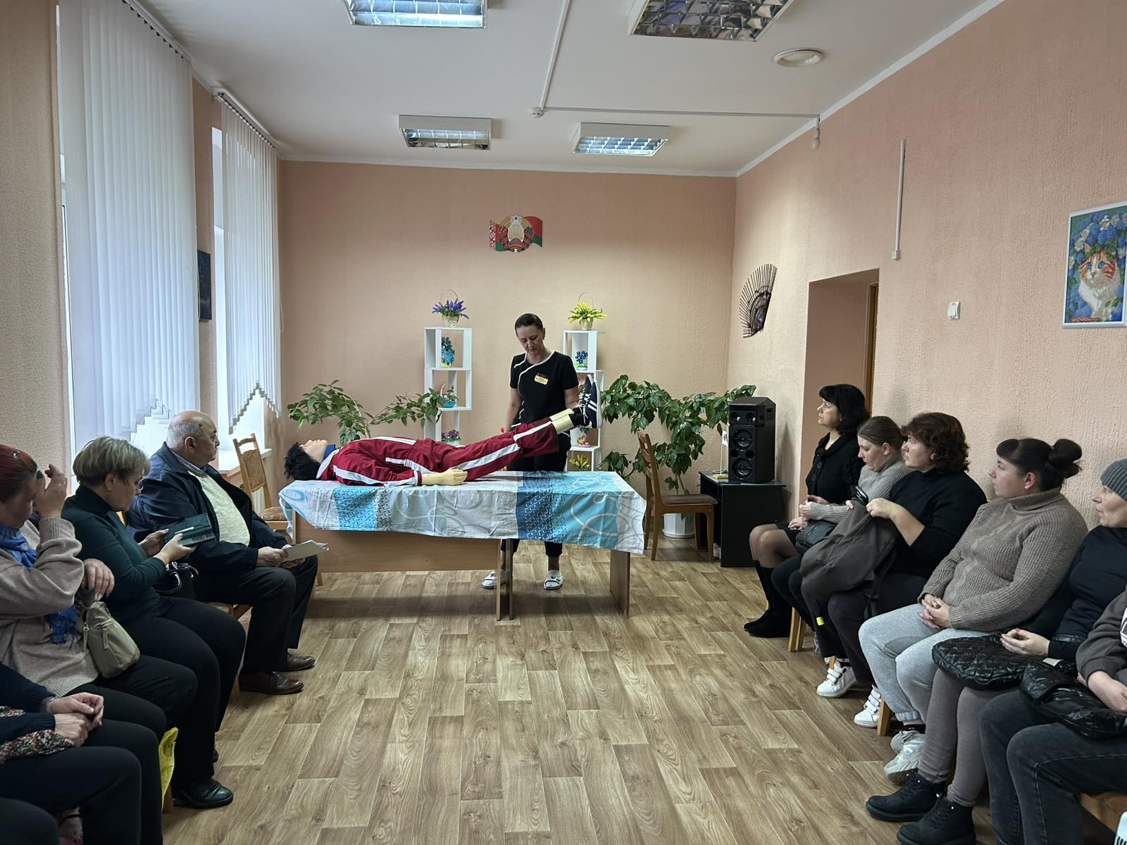 В учреждении «Лоевский территориальный центр социального обслуживания населения» на заседании «Школы социального работника» медицинской сестрой хирургического отделения УЗ «Лоевская ЦРБ» Тарасенко И.В. проведено занятие по теме «Особенности ухода за пожилыми гражданами. Гигиенические процедуры. Профилактика пролежней». Ирина Владимировна не только рассказала об условиях, в которых должны находиться лежачие больные, но и показала на практике, как правильно выполнять ежедневные гигиенические процедуры при уходе за ними в домашних условиях.